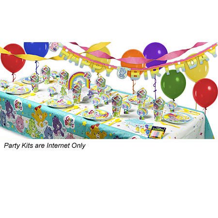 The Care Bears Super Party Kit includes: 8 Care Bears Lunch Plates, 16 Care Bears Lunch Napkins, 8 Care Bears Paper Cups, 1 Care Bears Plastic Tablecover 54 x 96, 8 Plastic Yellow Forks, 8 Plastic Yellow Spoons, 8 Plastic Yellow Knives, 8 Care Bears Invitations, 8 Care Bears Blowouts, 1 Care Bears Banner, 1 Care Bears Centerpiece, 20 Assorted Color Balloons, 1 White Curling Ribbon 66ft, 1 Hot Pink Crepe Streamer 81ft, 1 Buttercup Crepe Streamer 81ft, 24 Birthday Candles