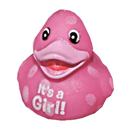 - Each duck is pink with light pink polka dots and has the phrase "It's a Girl!" on it.