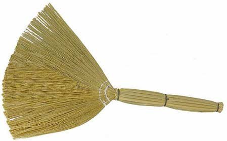 - Natural craft broom has a bamboo handle and dried raffia for the bristle