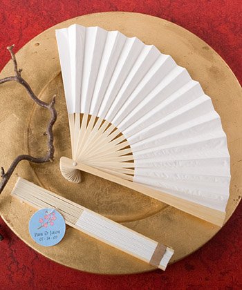 This listing is for a set of 100 fans. Looking for the perfect wedding favors for an outdoor reception, sassy summertime shindig, or just a simple way to keep your guests cool at the hottest affair of the season? The answer might just be blowing in the wind! These simple, elegant Asian white paper fans are a breezy breath of fresh air. Not only can a paper folding fan be used to keep guests comfy in sweltering sun, they can also be used as an artsy way to convey a message to friends and family! Consider adding a thoughtful note using a stamp or calligraphy, or try weaving a bit of colored paper through the spokes of each paper fan to create a clever place card holder and wedding favor all in one! Size: 10" in length If you need a different quanity, I can set up a special auction for you. LauraRLake@gmail.com Thanks!